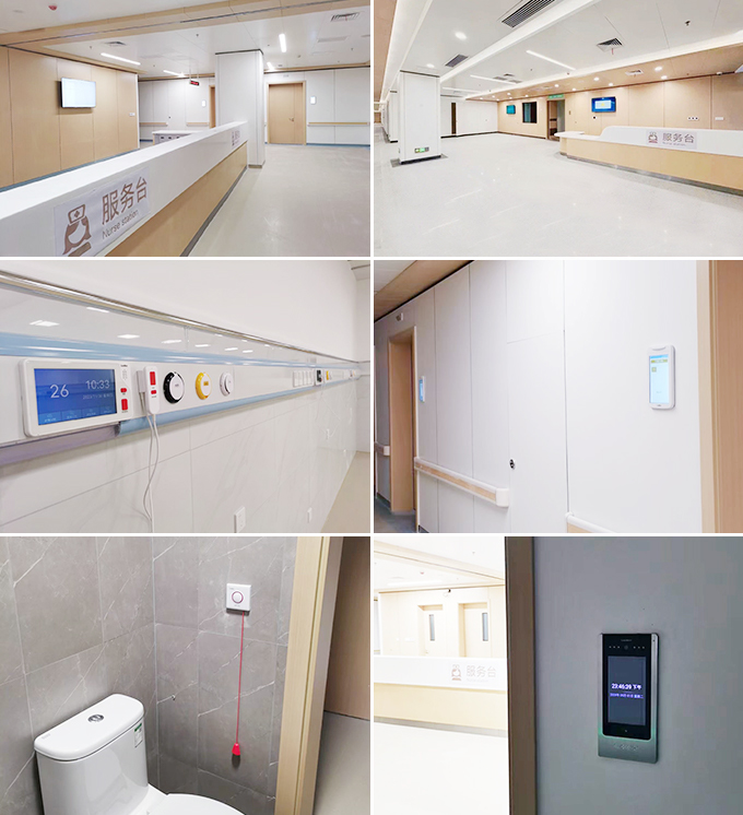 病房门口,具有信息交互显示的门口机可清晰地显示患者的基本诊疗信息、护理等级、责任医生及责任护士。智能走廊屏,可直观显示呼叫患者的病房、床位号,指引护士第一时间前往处理。
