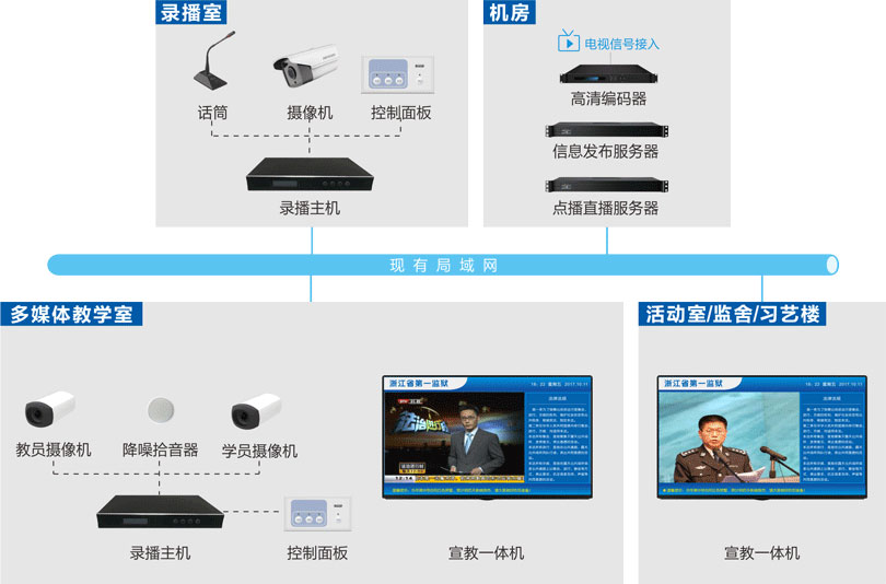 支持插播、任务管理、课程表管理、直播、语音广播等功能。