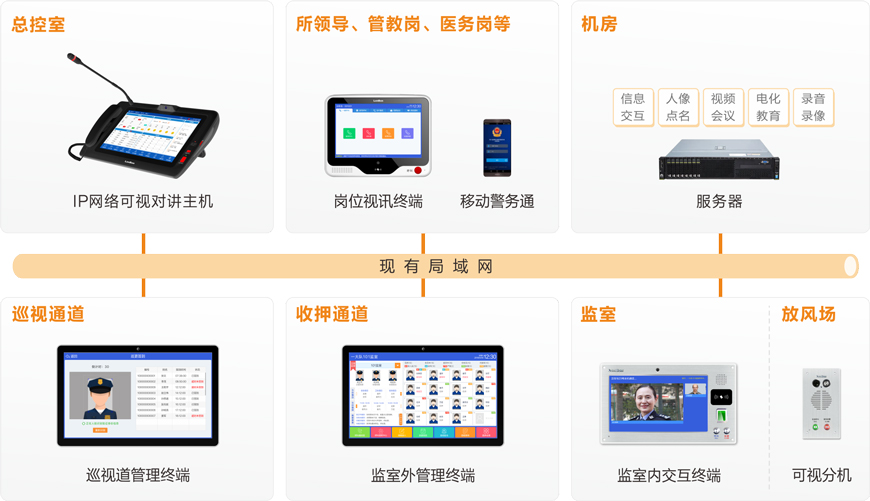 | 管教岗 提讯岗 医务岗 | 双向可视分机 | NLV-S10 | 台 | N | 安装在各岗位办公室, 每个办公室1台 |