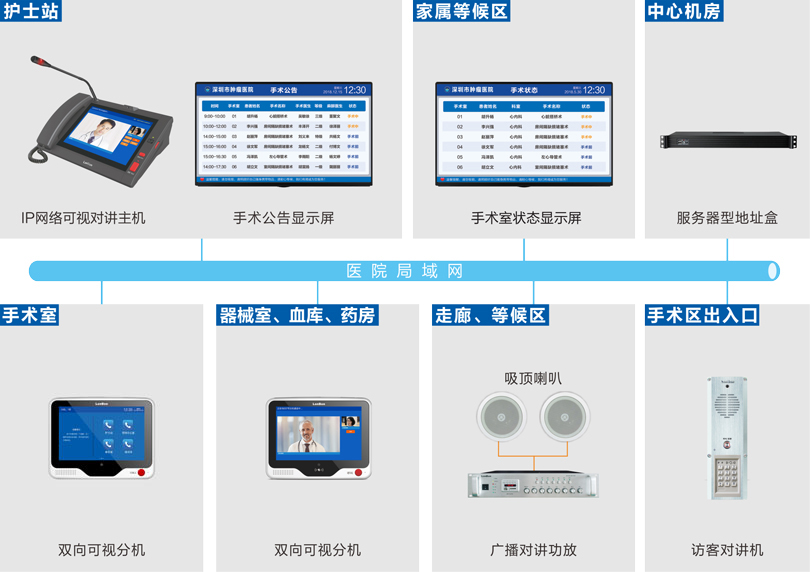 可视双工:护士站与手术室、手术室与手术室之间均可高清可视全双工对讲。