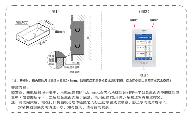 • 采用10.2英寸触摸显示屏,铝合金边框,病房门口嵌入式安装。