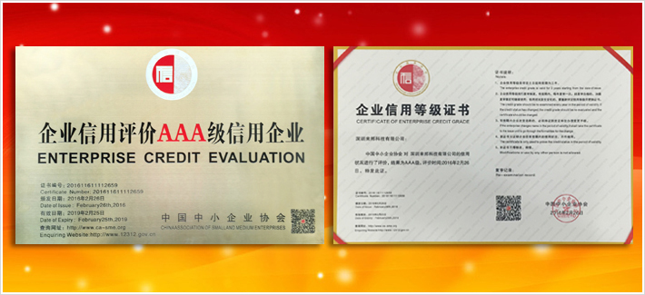 中心 由国家商务部和国务院国资委授权的国家一级行业协会(中国中小企业协会),对企业开展的企业信用等级评价活动中,深圳巅峰国际科技有限公司被评为信用等级最高的“AAA”级企业信用单位。