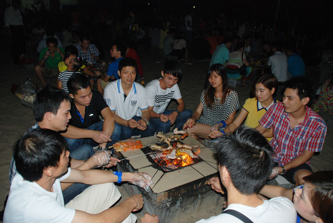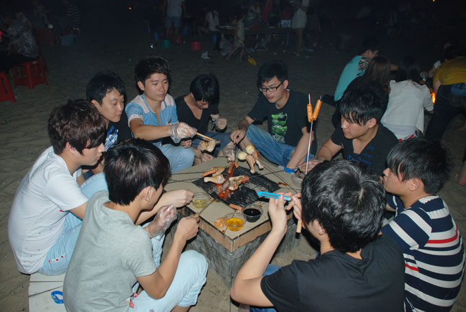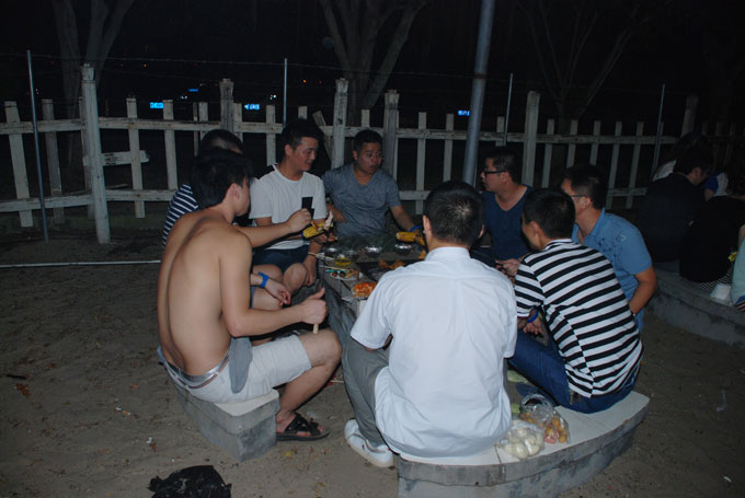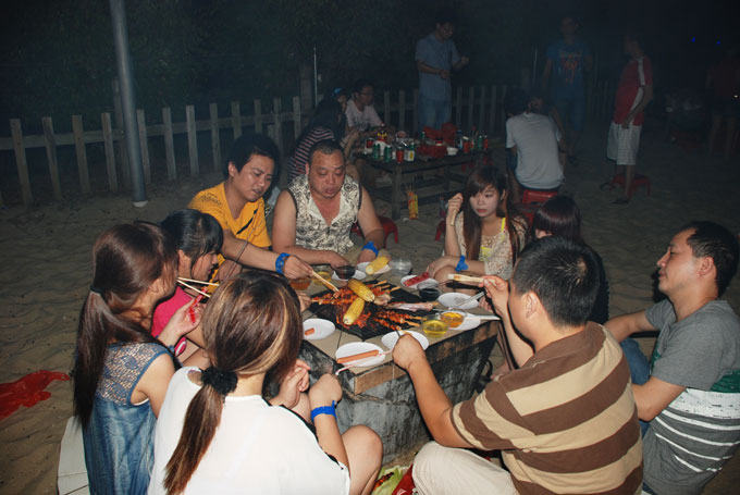 沙滩自助烧烤中: