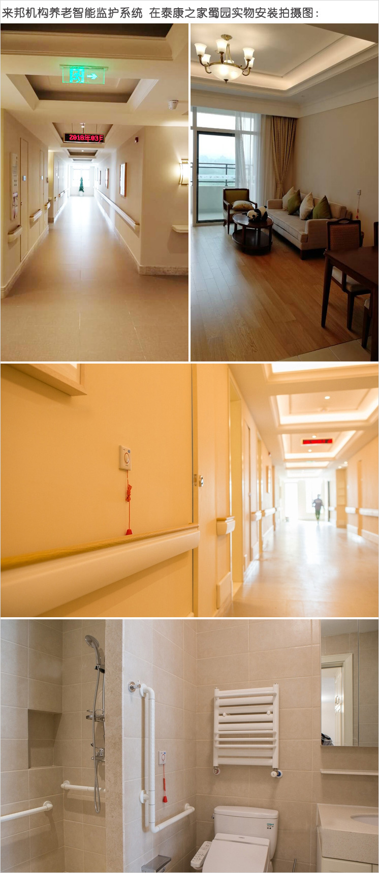 ①老人在养老院发生突发情况时,可通过呼叫按钮或对讲分机能快速的呼叫到照护人员,得到及时的救助。
