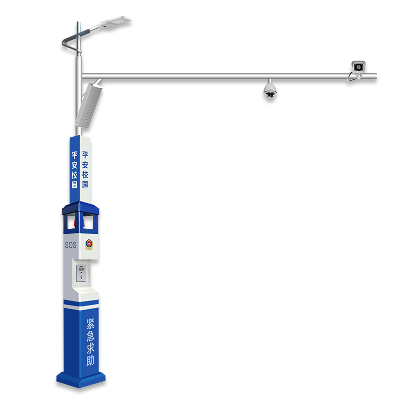 指示牌、摄像头三角长杆或短杆(网络摄像机需自备)、路灯支架及防水路灯、防水音柱全套;一般安装在校园主干通道、操场、花园