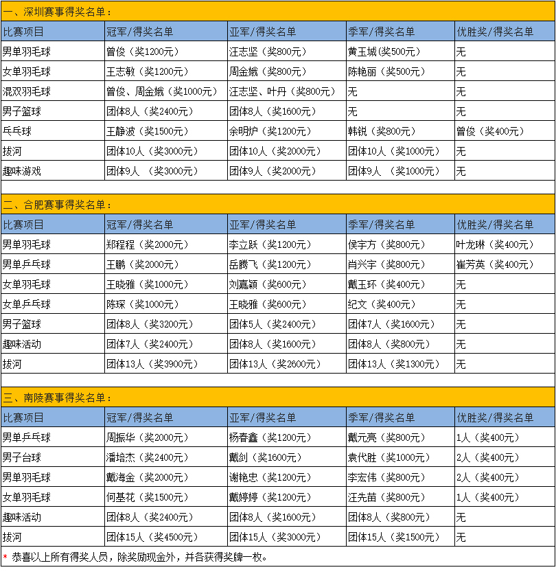 公司对胜出者颁发了奖金(附表):