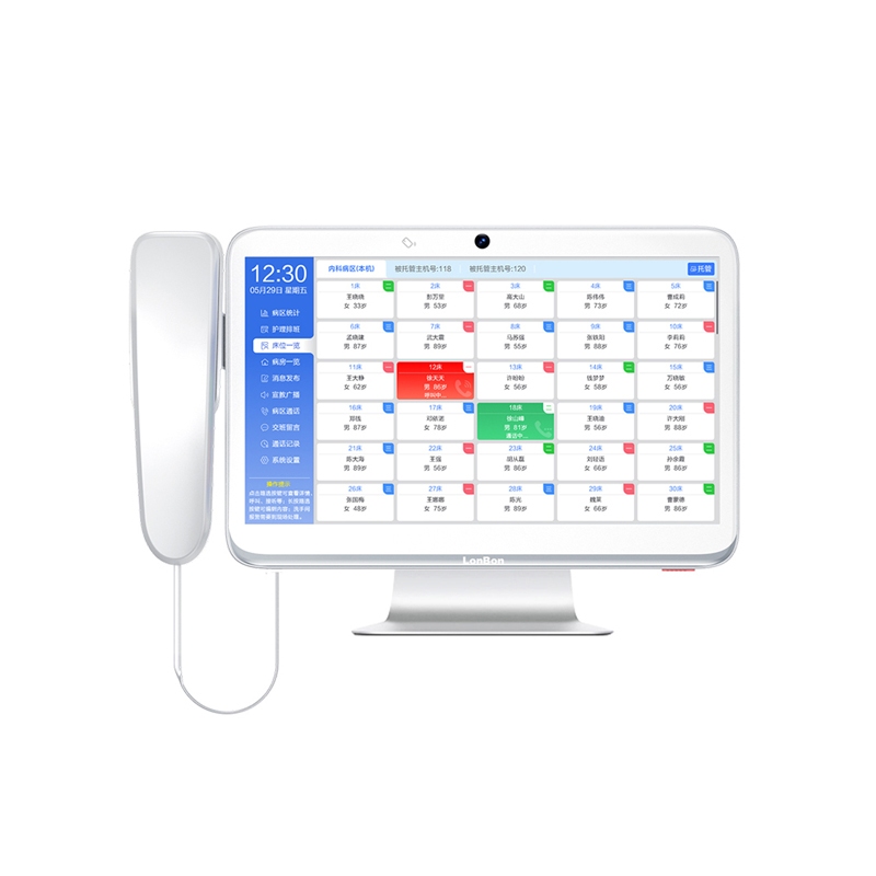 • 采用13.3英寸触摸显示屏,含摄像头,支持1080P高清视频,桌面式安装在护士站。