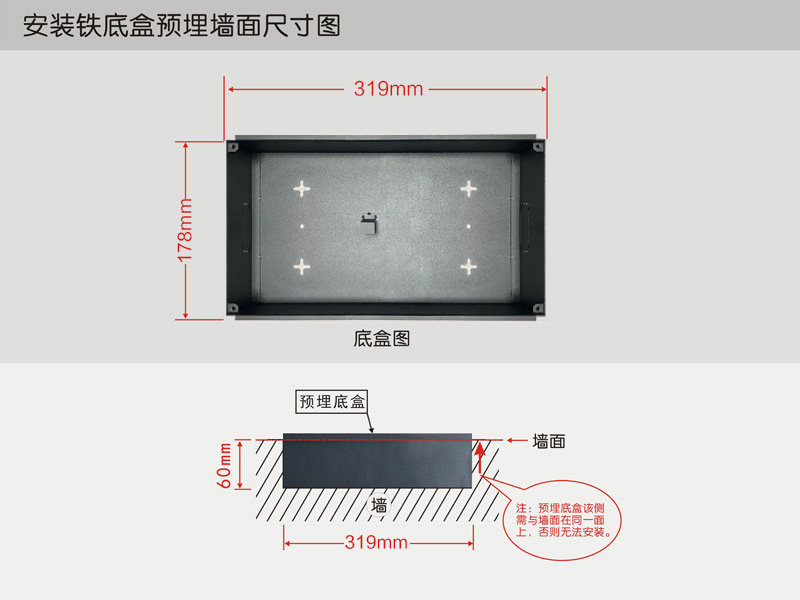 安装铁底盒预埋墙面尺寸图