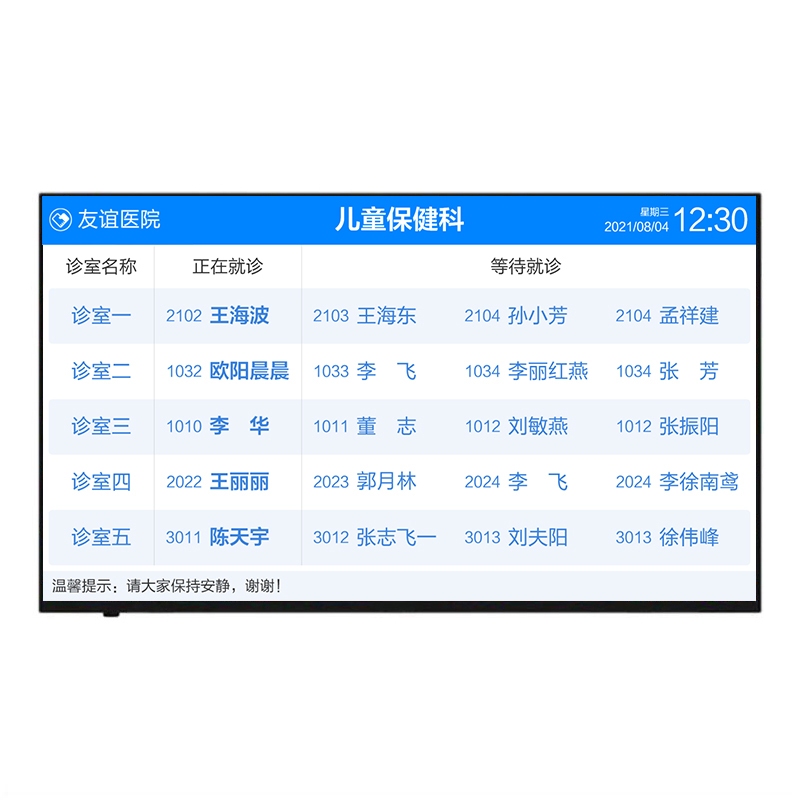 门诊排队叫号模块 — 等候区叫号显示屏 —