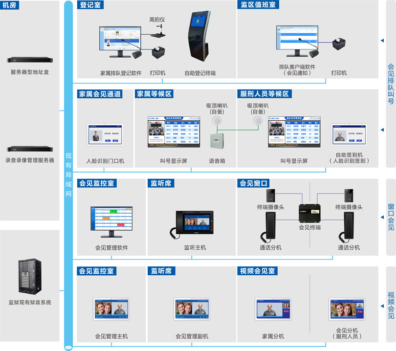(会见预约、排队叫号、会见管控、语音识别、狱务公开查询)
