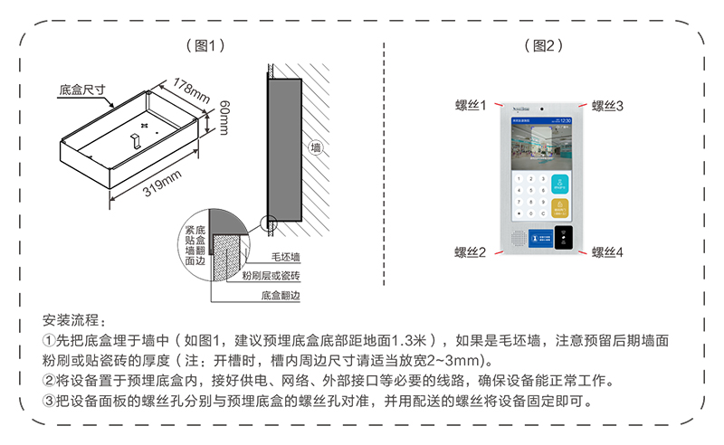 • 采用10.2英寸触摸显示屏,铝合金外壳,含摄像头,支持1080P高清视频,嵌入式安装在病区门口。