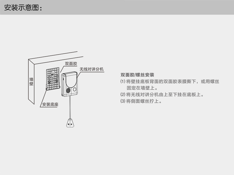 ①双面胶/螺丝安装