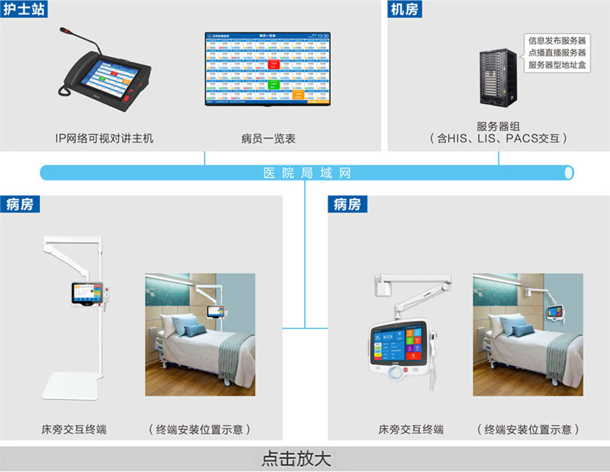 巅峰国际床旁交互系统 基于局域网LAN和广域网WAN传输(可跨网段跨路由),专用于医院,可实现医护患床旁交互应用及物联网扩展功能。旨在提高医院护理工作及服务的信息化水平。